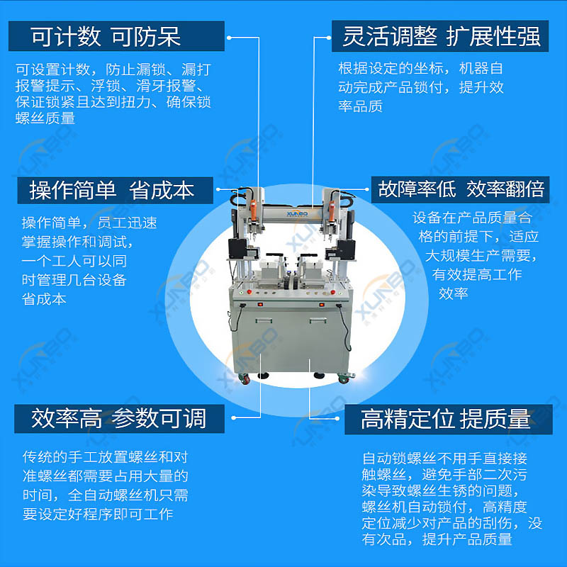 訊博科技落地式雙伺服雙工位自動螺絲機特點及應用